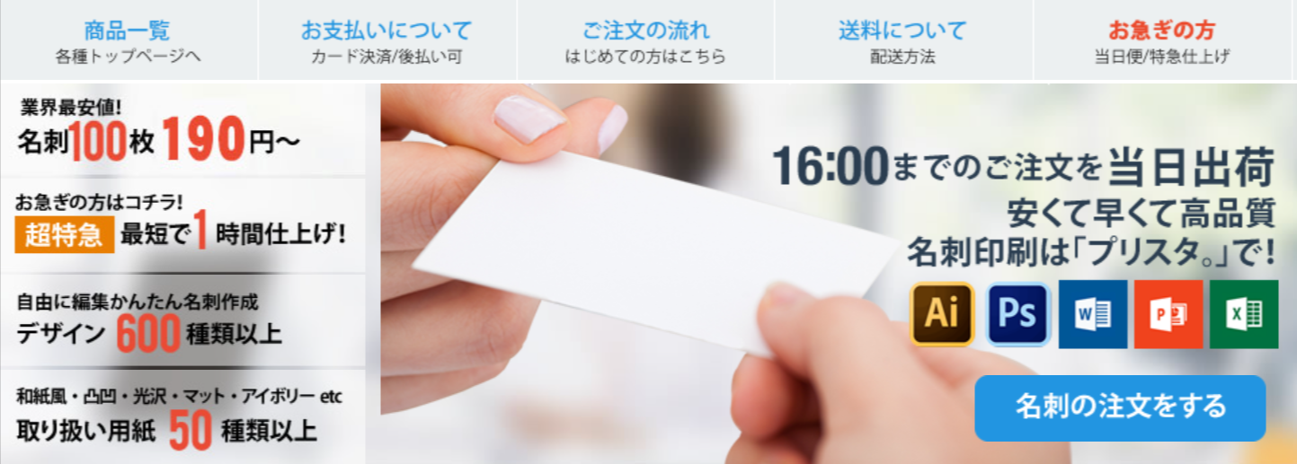 「急ぎで名刺を用意したいときの選択肢」として覚えておくといいサービスです。